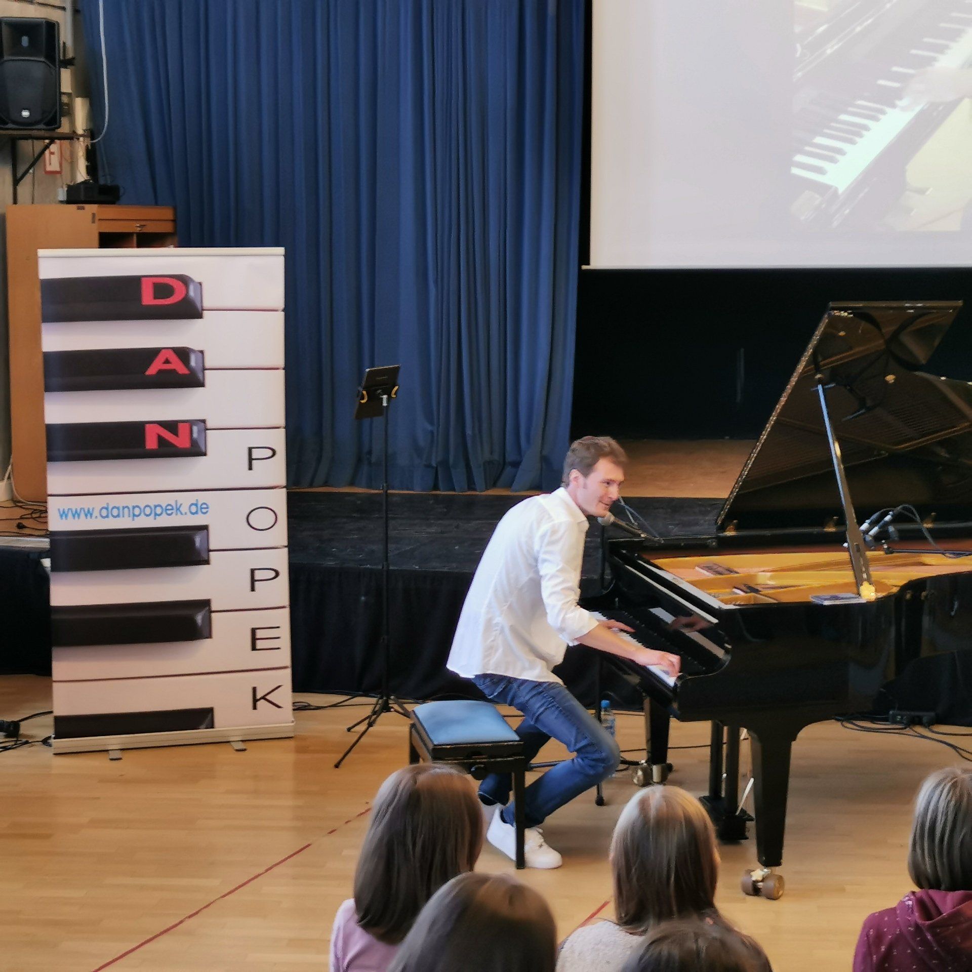 Egal ob „Hummelflug“ von Nikolai Rimski-Korsakov, eine Bearbeitung von „Bad“ (Michael Jackson) oder ein selbst komponierter Boogie Woogie – Der Bad Rappenauer Pianist Dan Popek sprach mit seinem abwechslungsreichen Programm alle Schülerinnen und Schüler der Klassen 5-12 an. Neben der souveränen Bewältigung der technisch anspruchsvollen Stücke bereicherte der junge Pianist seinen Vortrag durch akrobatische Einlagen, die die Stimmung im großen Musiksaal schnell anheizten. Die Ansage „Ihr seid nicht in der Oper und dürft gerne richtig mitgehen“ wurde zum Anlass genommen, um den Vortrag durch frenetischen Zwischenapplaus zu würdigen. Dan Popek zeigte, dass Klaviermusik alles andere als eingestaubt und nur etwas für ein älteres Publikum ist, und auch eine vom Publikum energisch geforderte Zugabe wurde selbstverständlich noch gespielt und sorgte dafür, dass der Besuch zu einem vollen Erfolg wurde.