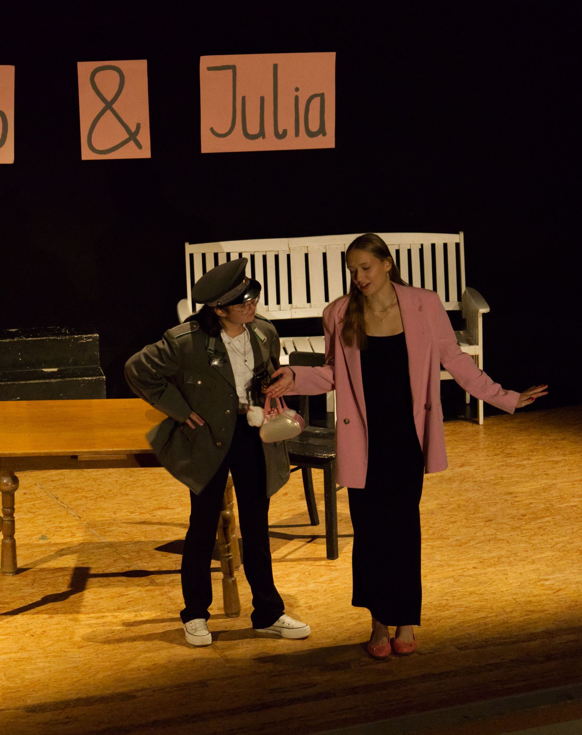 Das White Horse Theatre war wieder einmal zu Gast am Wilhelmi und führte Theaterstücke in englischer Sprache mit Native Speakern auf. Die Kursstufe erlebte eine Inszenierung von 'Romeo and Juliet', die Kl. 8 und 9 erhielten Einblicke in die Besonderheiten englischer Alltagskultur im Stück 'Dreaming in English'.