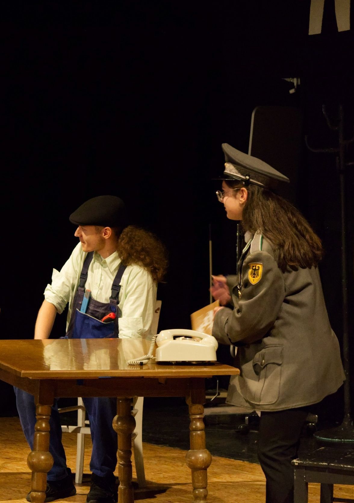 „Großstadtflair zieht ein in Obermuzelhausen!“. So tönte es vor einer Woche von der Bühne des großen Musiksaals, als die Theater AG der Mittel- und Oberstufe ihr erstes Stück nach fünf Jahren Pause auf die Bühne brachte. Dass sich das Warten gelohnt hat, bewiesen die zwölf Schauspielerinnen und Schauspieler unter Regie von René Morper und Berta Nelms-Brech in zwei gut besuchten Aufführungen der aberwitzigen Kriminalkomödie "Es war die Nachtigall und nicht die Leiche" von Christine Steinwasser. Die Schülerinnen und Schüler, die teilweise erst ganz kurzfristig eine Rolle übernommen hatten, entlockten dem Publikum mit ihrer Darbietung fröhliches Gekicher, lautes Gelächter und am Ende begeisterten und wohlverdienten Applaus.