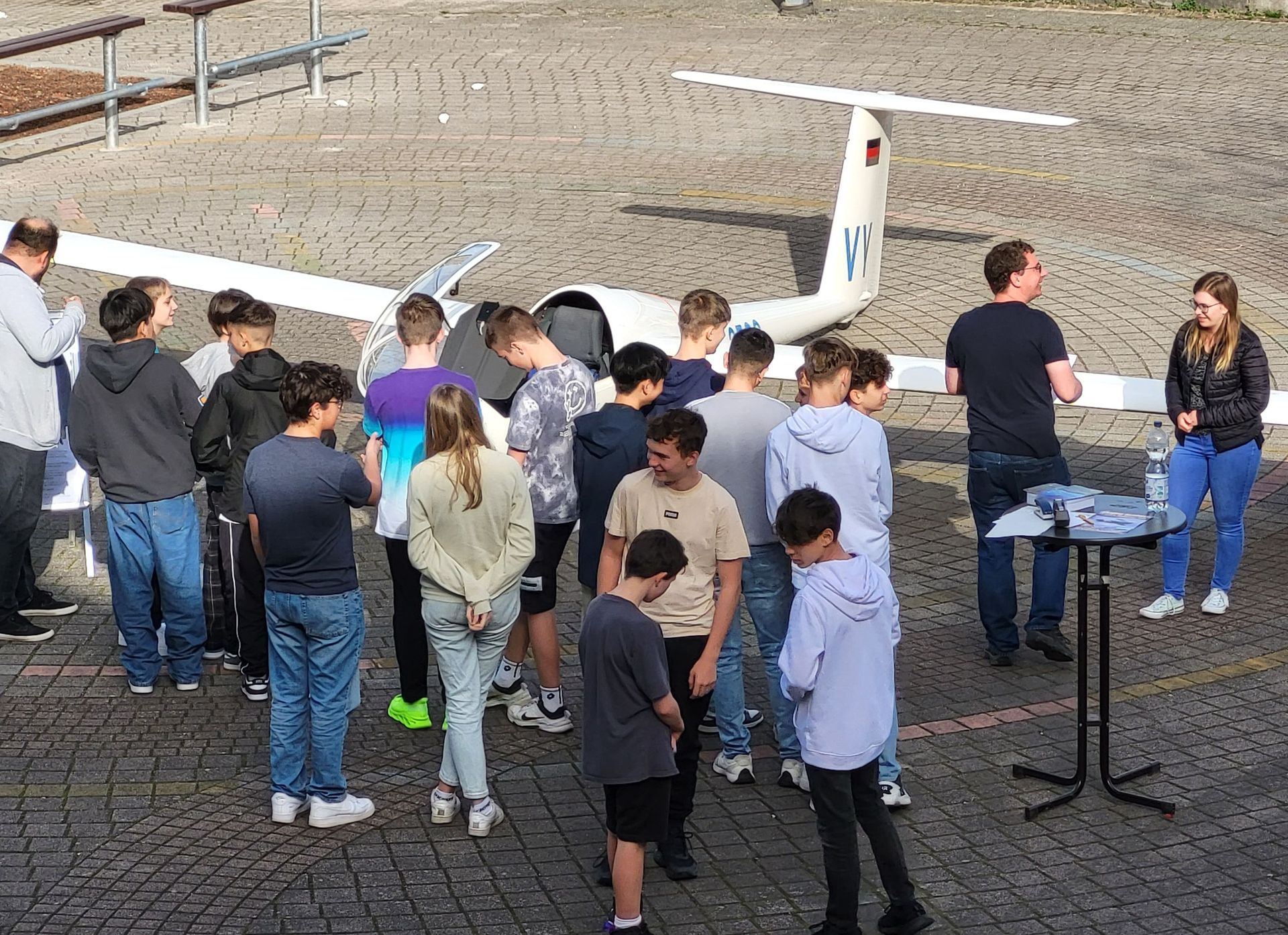 Interessierte Schülerinnen und Schüler beim Besuch des Flusportrings Kraichgau e.V. am Wilhelmi